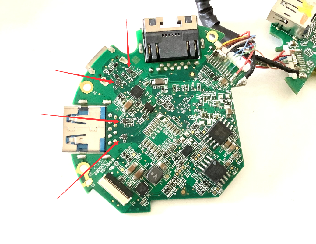 ESD缺省令人恼火,HDMI接口,下游 USB 部分的 ESD 连焊盘都省没,说明在设计阶段就没考虑这个事情。如果手动将ESD器件补上的话,防护水平在目前的转接器中算挺不错的了