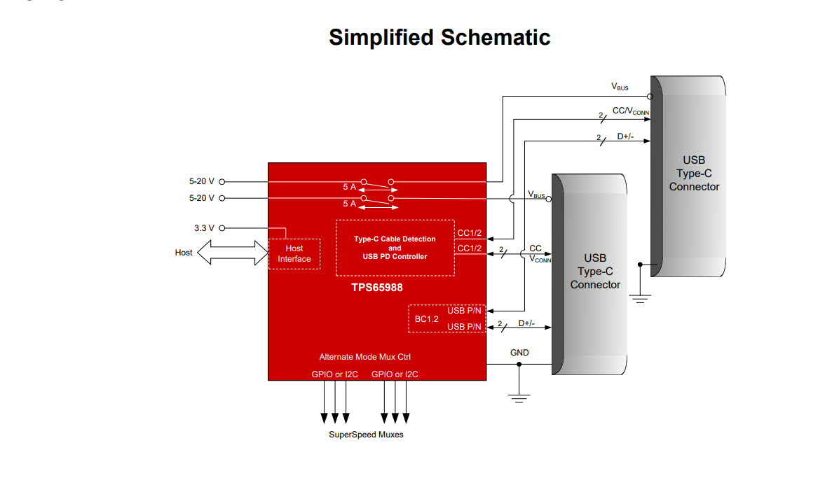 作为非常早期(17年)的Type C多媒体转接器,IC的选用特征非常鲜明,使用MCU+TPS65988 的方案完成了 Type C Alt Mode 的触发和管理